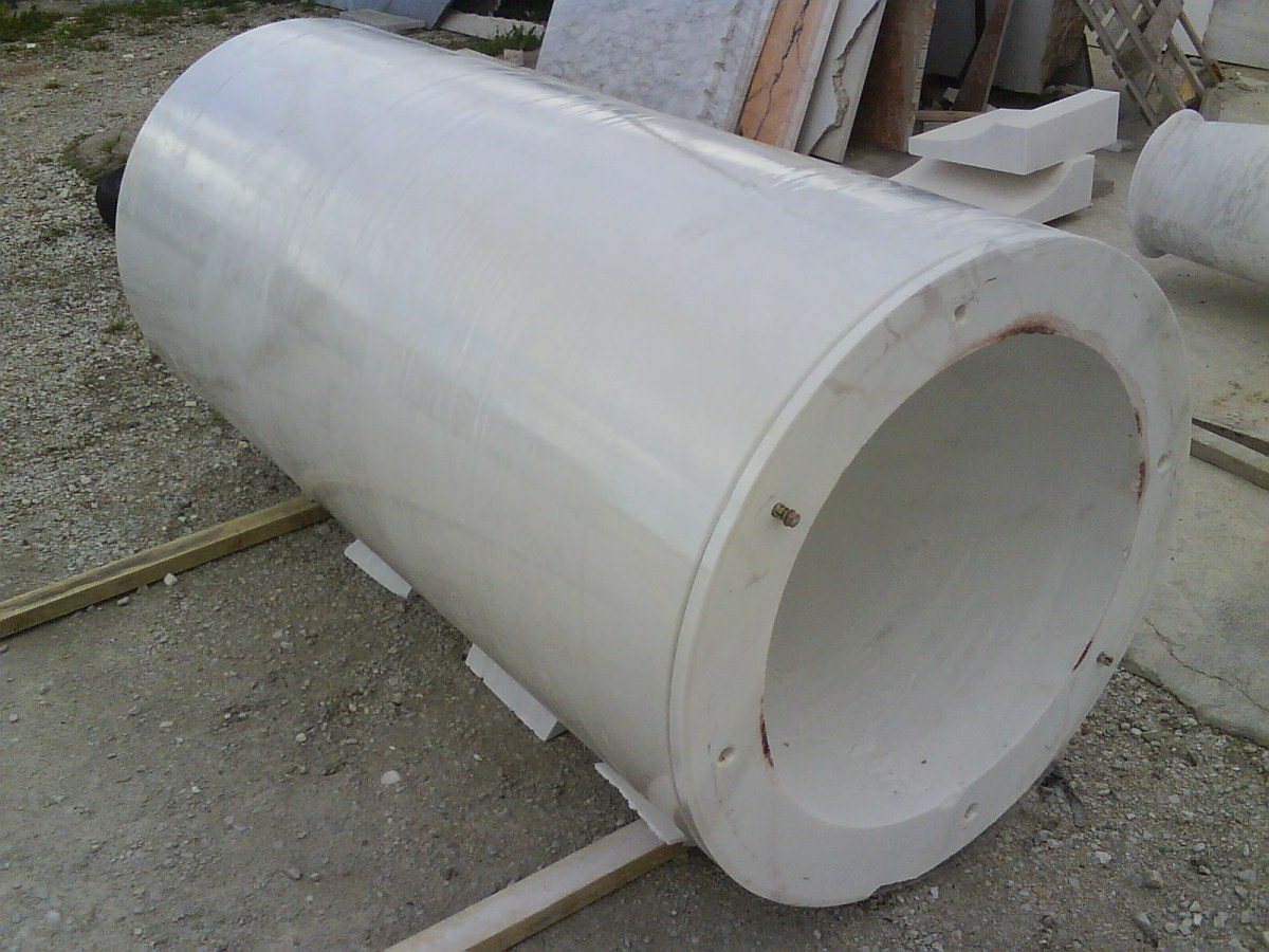 Η εταιρεία “BAIRAKTARIS MARBLE S.A” κατασκεύασε 4 κολώνες ύψους 10 μέτρων με διάμετρο βάσης 1.60 μέτρων, από λευκό μάρμαρο ΘΑΣΟΥ Α΄ ποιότητας. Χαρακτηριστικό του έργου ήταν οι σπόνδυλοι του κορμού της κολώνας, ύψους 2 μέτρων ο κάθε ένας, οι οποίοι ήταν αδειασμένοι και τοποθετήθηκαν «φορετοί» σε μεταλλική κατασκευή.