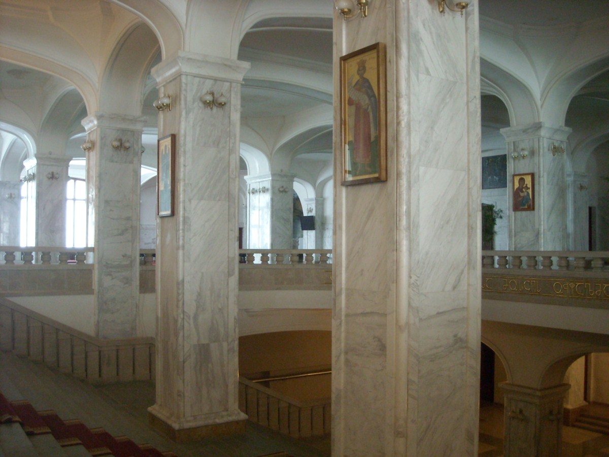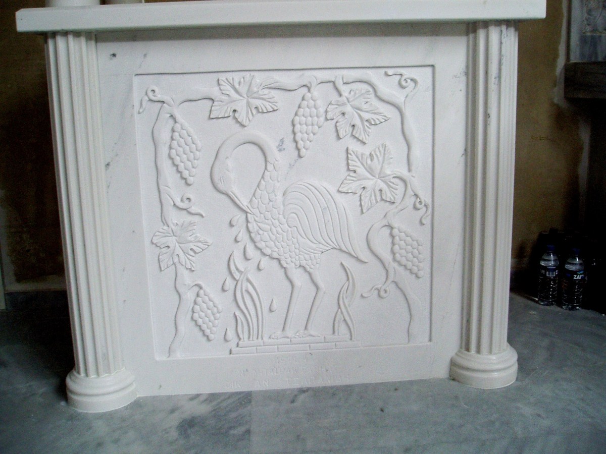 Η εταιρεία “BAIRAKTARIS MARBLE S.A” ανέλαβε τον σχεδιασμό, την κατασκευή και την τοποθέτηση όλων των μαρμάρινων στοιχείων του ναού. Σχεδίασε, κατασκεύασε, και τοποθέτησε το τέμπλο, τα προσκυνητάρια τον δεσποτικό θρόνο, την Αγία Τράπεζα καθώς επίσης την επένδυση των κολώνων και των τοίχων και του πατώματος. Τα υλικά που χρησιμοποιήθηκαν είναι το λευκό μάρμαρο SIVEC, το κόκκινο μάρμαρο ΕΡΕΤΡΙΑΣ, το κίτρινο μάρμαρο SILVIA ORO. Για το πάτωμα προτιμήθηκε το ημίλευκο μάρμαρο ΚΑΒΑΛΑΣ, σε συνδυασμό με άλλα χρωματιστά μάρμαρα για την δημιουργία των σχεδίων.