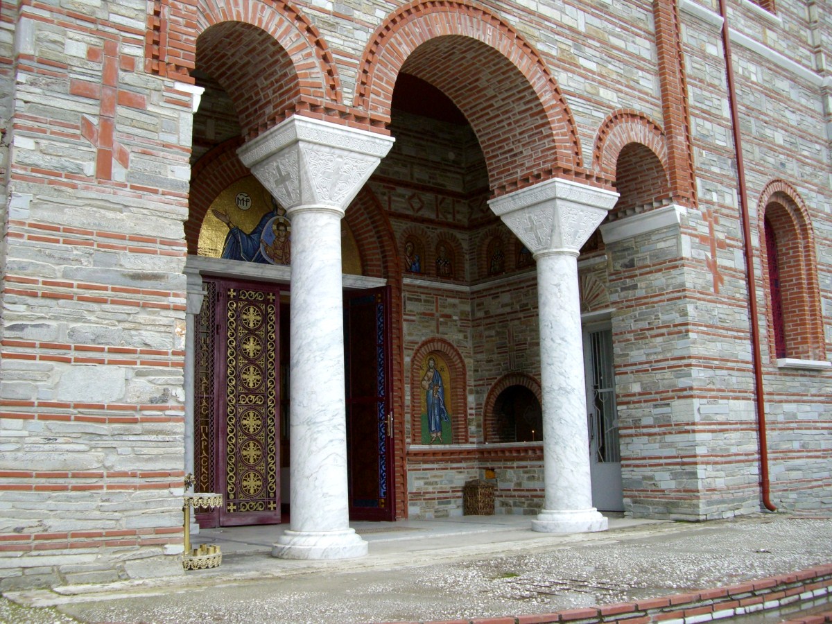 Η εταιρεία “BAIRAKTARIS MARBLE S.A” ανέλαβε την κατασκευή όλων των εξωτερικών μαρμάρινων στοιχείων του ναού. Κατασκεύασε τα μαρμάρινα παράθυρα, τις κολώνες των παραθύρων και τις εισόδου καθώς και τις κορνίζες περιμετρικά του ναού. Τα υλικά που χρησιμοποιήθηκαν είναι το ημίλευκο μάρμαρο ΚΑΒΑΛΑΣ και το ημίλευκο μάρμαρο ΒΑΘΥΛΑΚΟΥ.